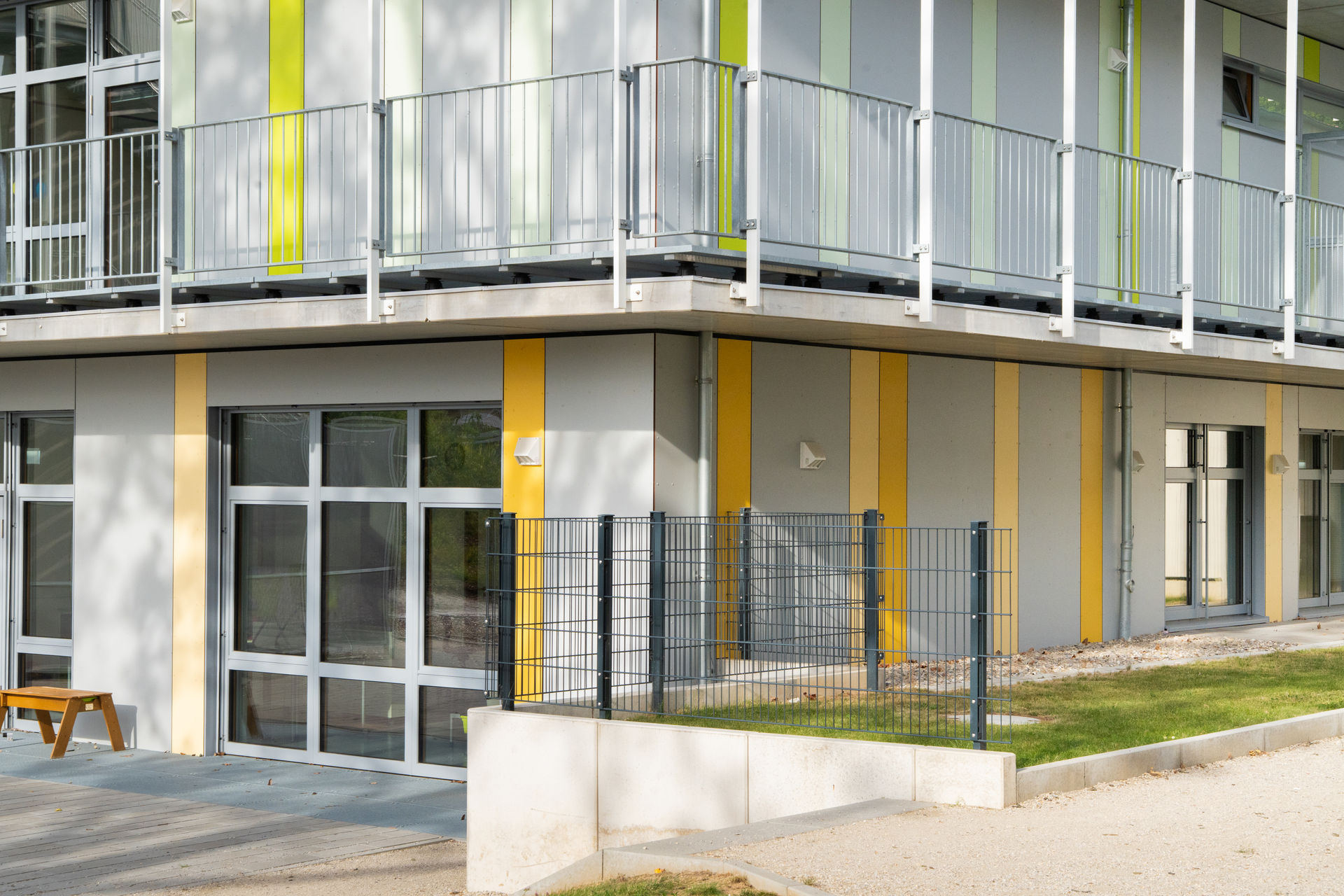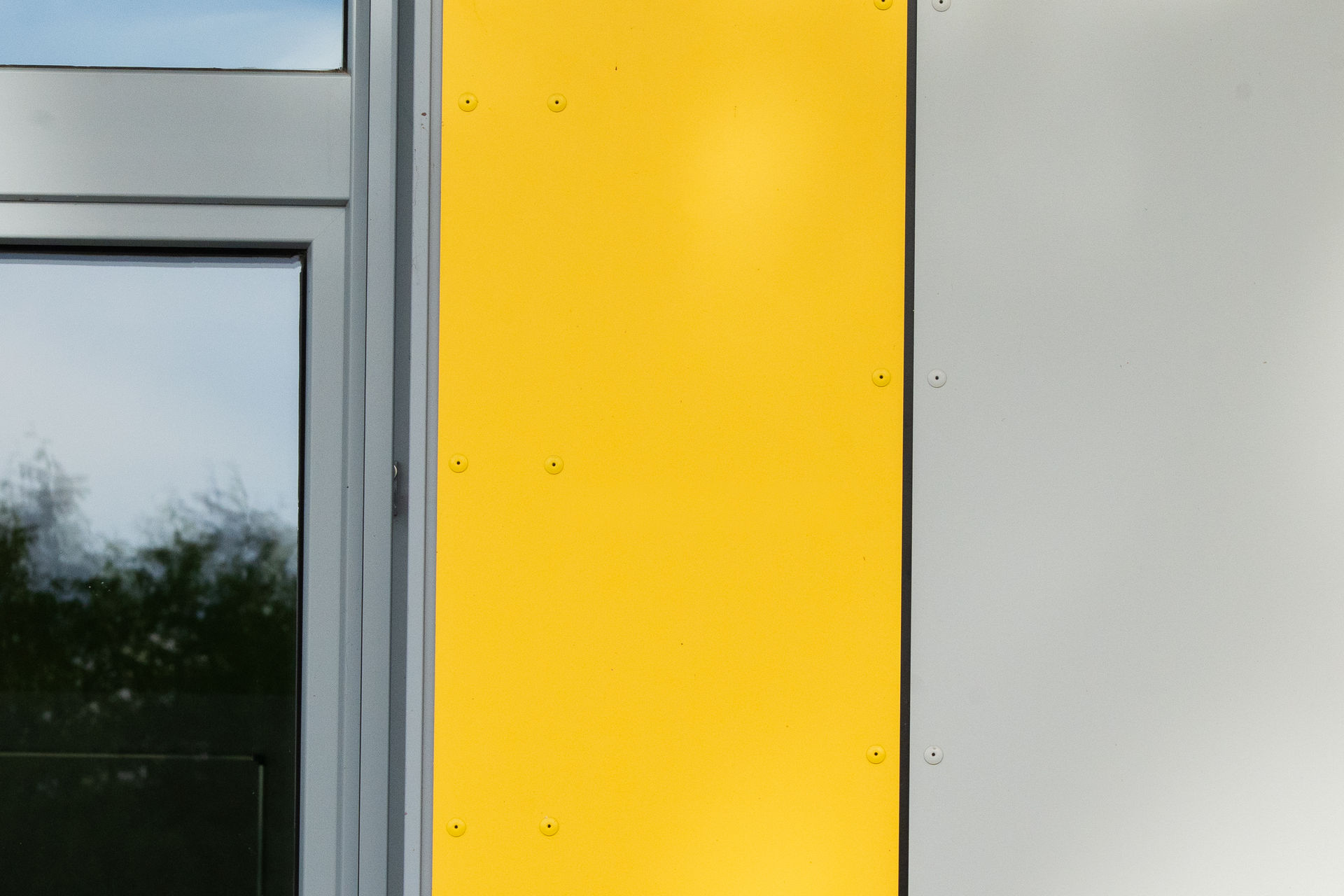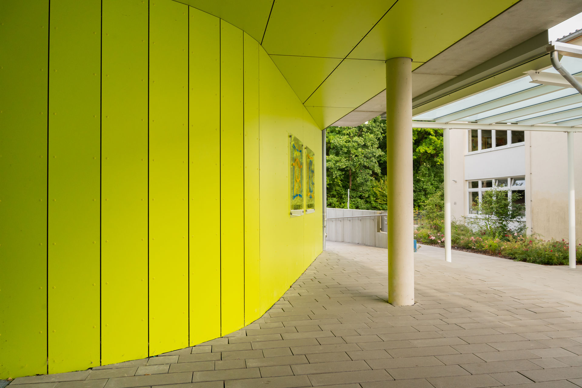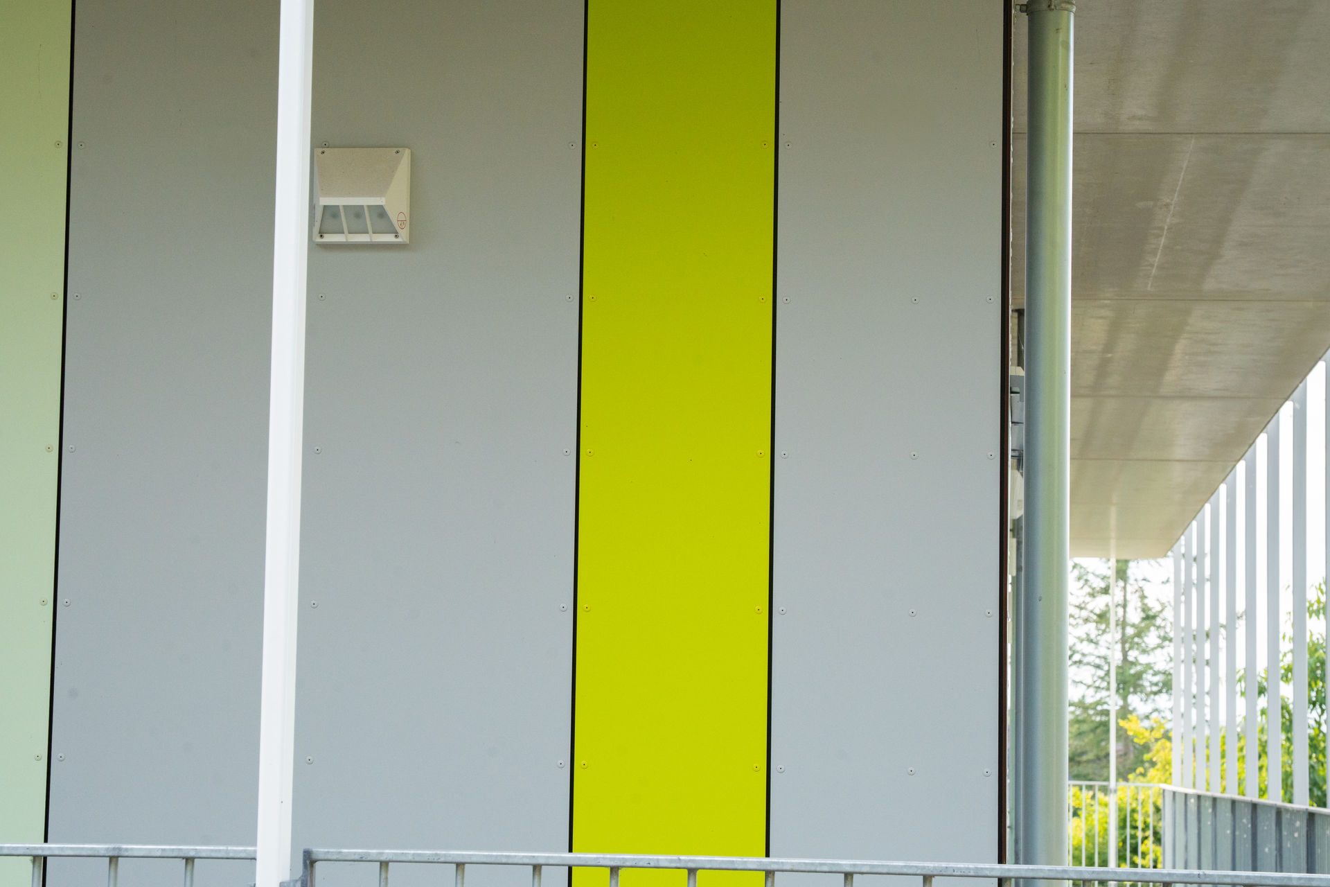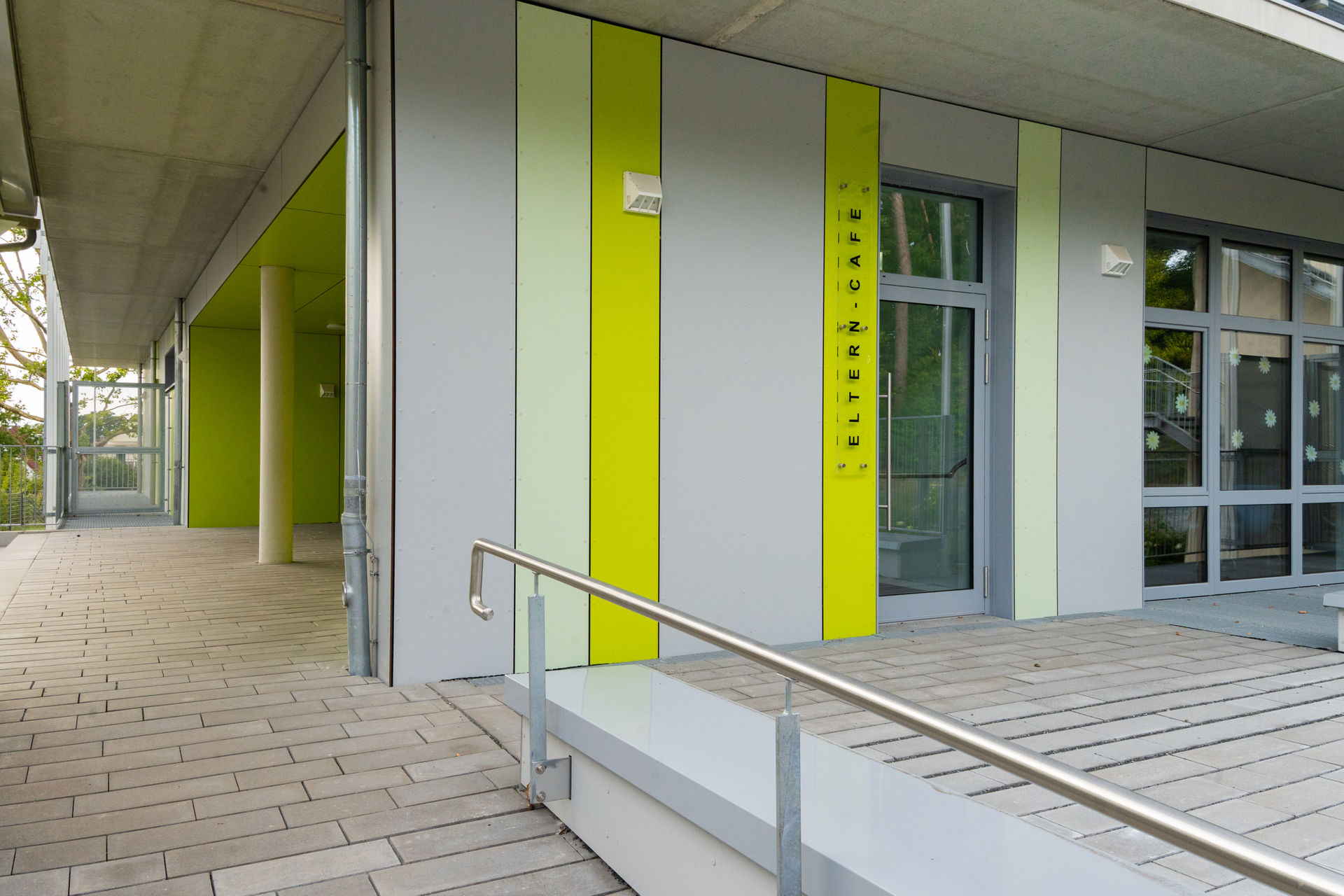 Die Südschule in Stadtallendorf entstand als Neubau mit einer Fassade aus 800 m² Fundermax-Platten. Das Material verbindet Robustheit mit gestalterischer Flexibilität und verleiht dem Gebäude eine moderne, lebendige Wirkung.