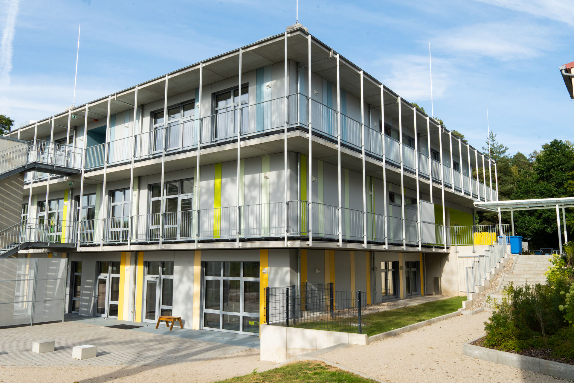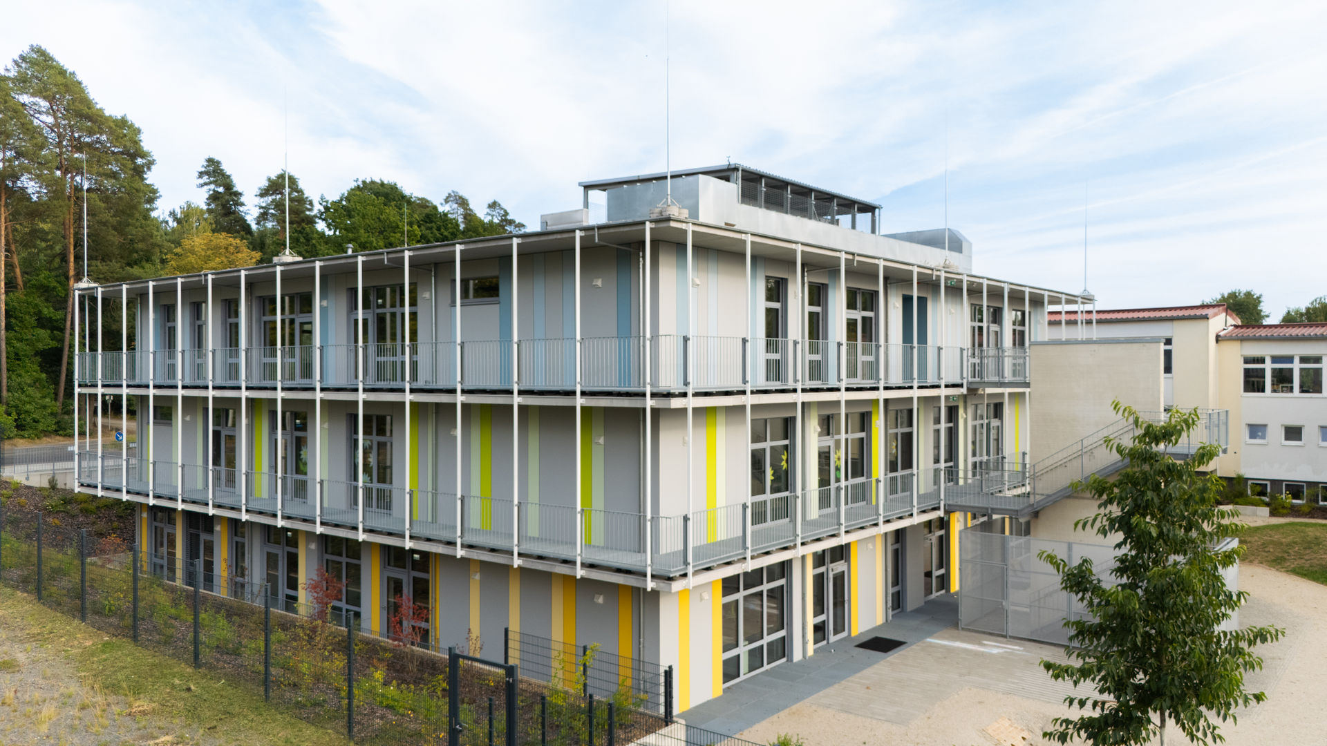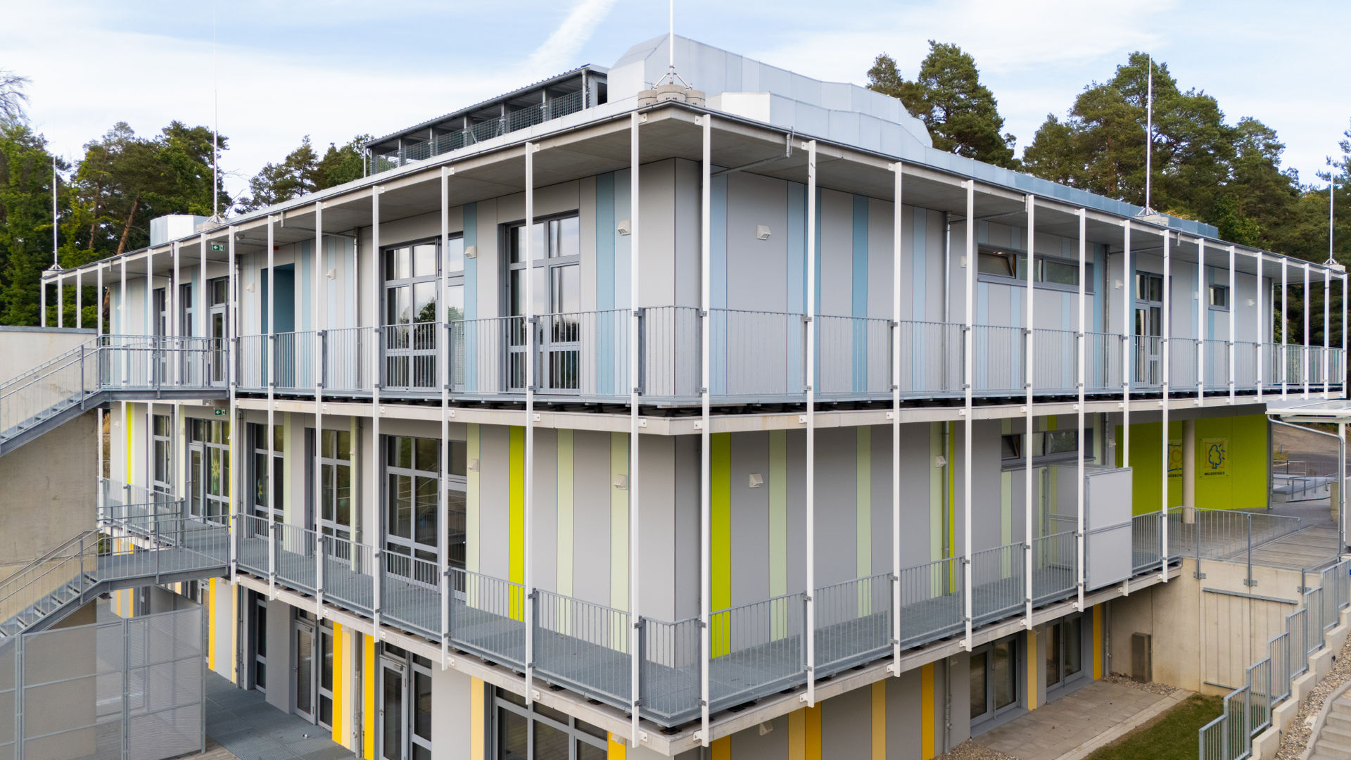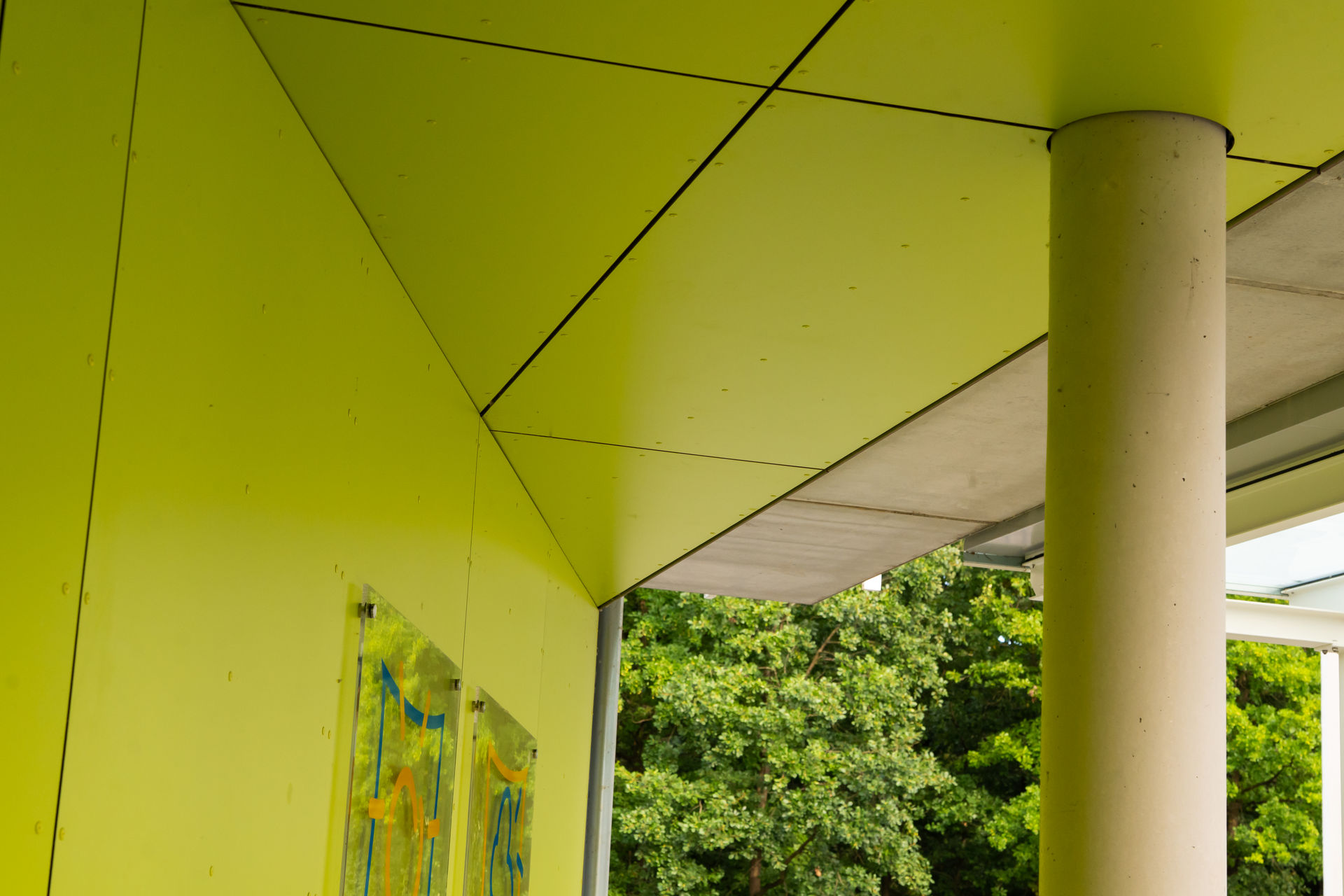 Die Südschule in Stadtallendorf entstand als Neubau mit einer Fassade aus 800 m² Fundermax-Platten. Das Material verbindet Robustheit mit gestalterischer Flexibilität und verleiht dem Gebäude eine moderne, lebendige Wirkung.