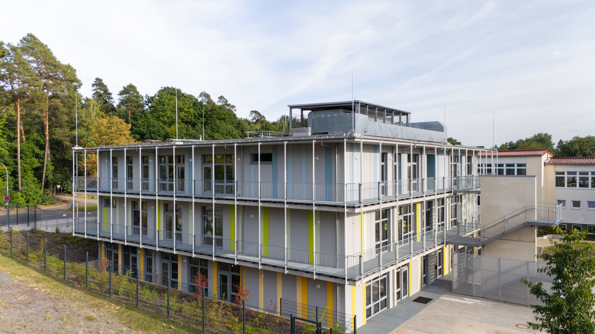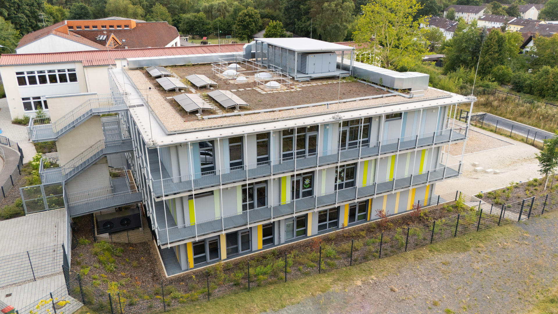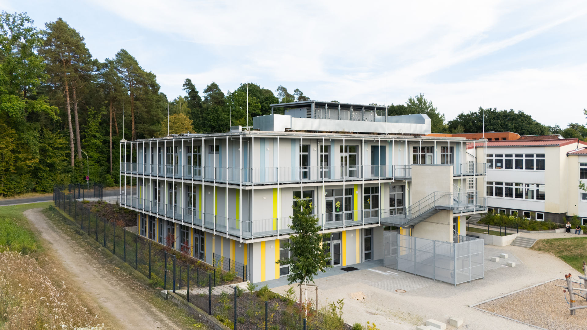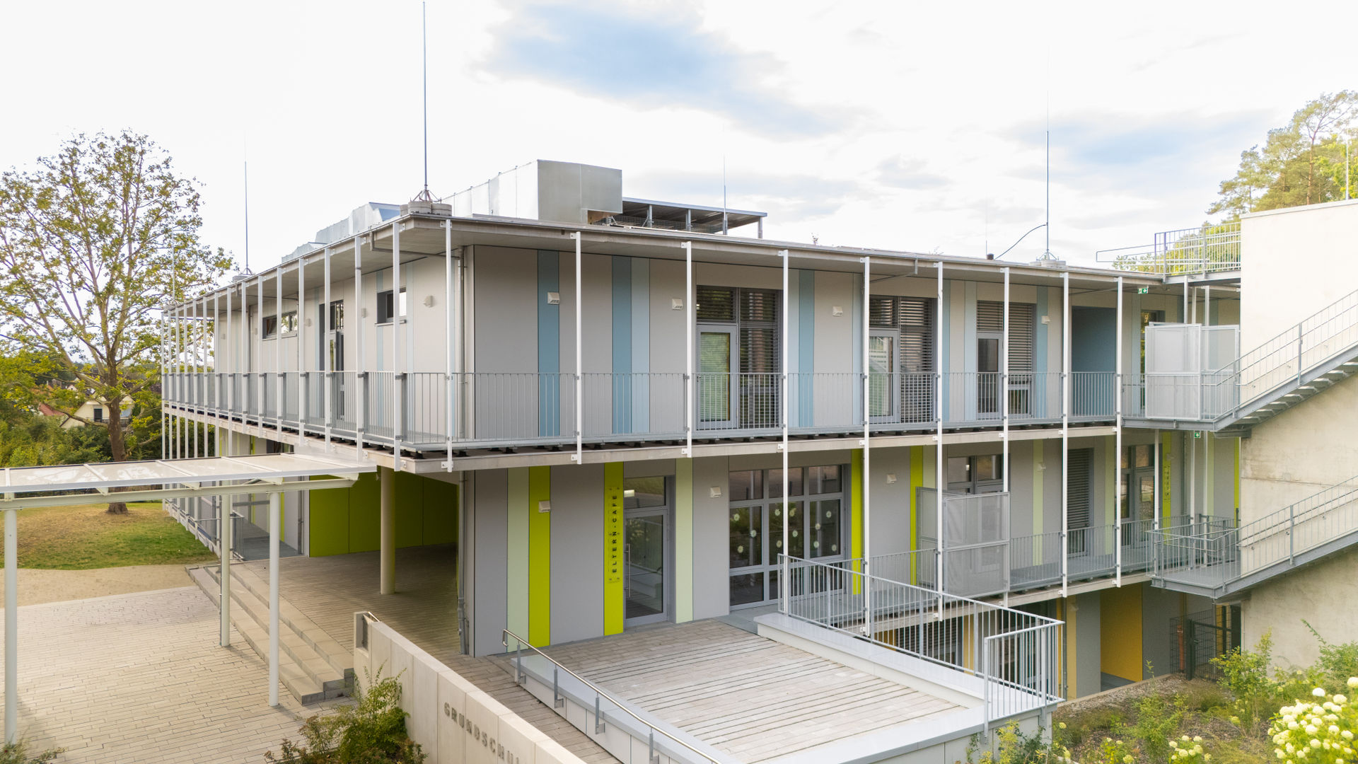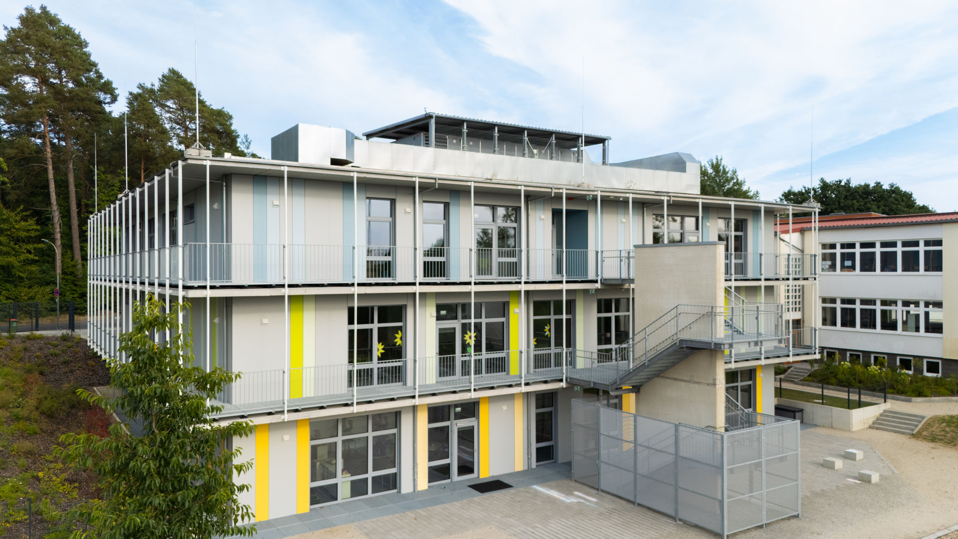 Die Südschule in Stadtallendorf entstand als Neubau mit einer Fassade aus 800 m² Fundermax-Platten. Das Material verbindet Robustheit mit gestalterischer Flexibilität und verleiht dem Gebäude eine moderne, lebendige Wirkung.